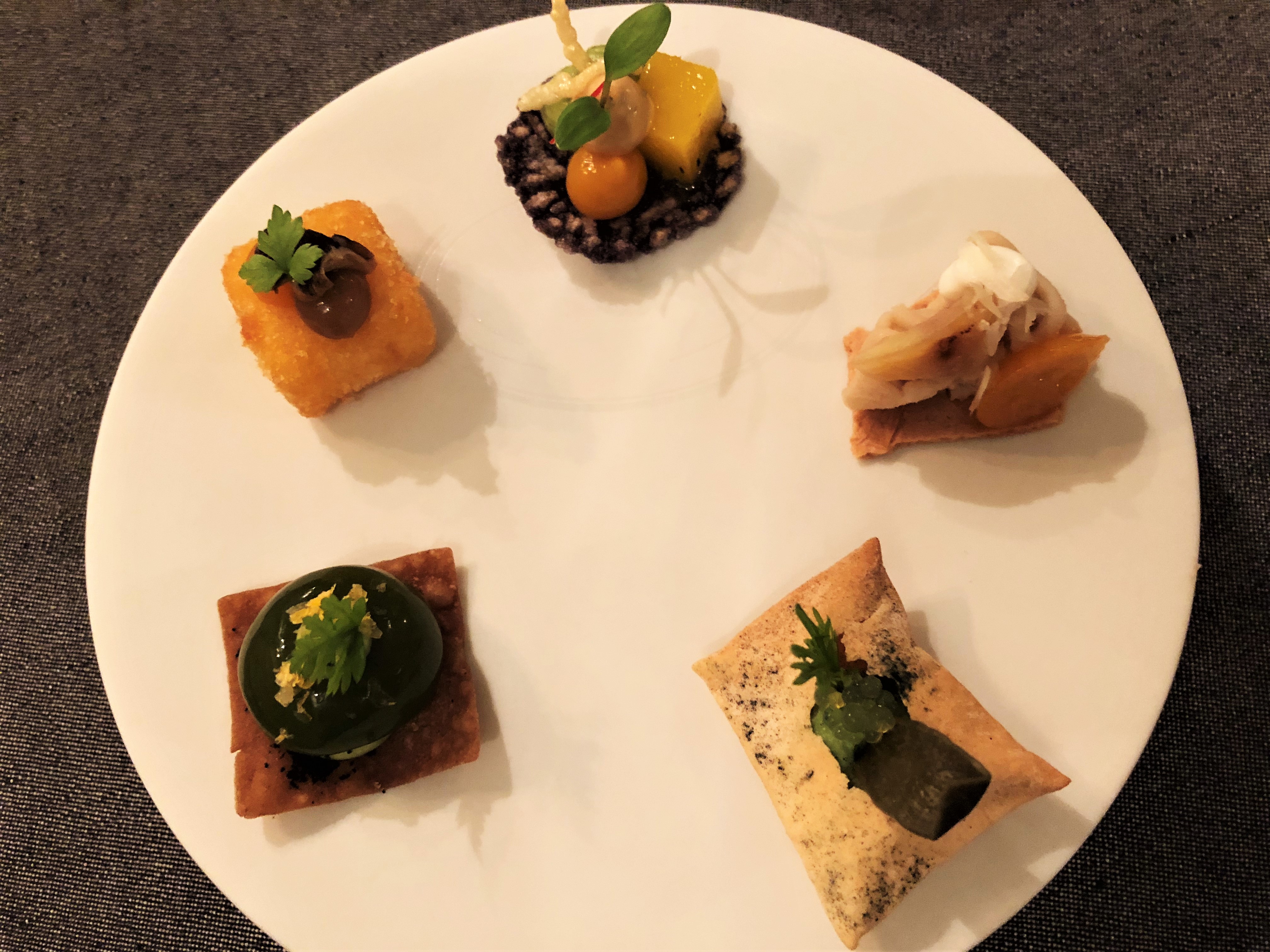 Die ersten Apéros bestätigen diese Erinnerung aufs Trefflichste. Sowohl Maronencreme mit Kumquats, ein Knusperkissen mit Algencreme, Grüne Sauce als Sphäre, Mango und Koriander sowie eine Krokette sind präzise Petitessen, die durchweg gefallen.