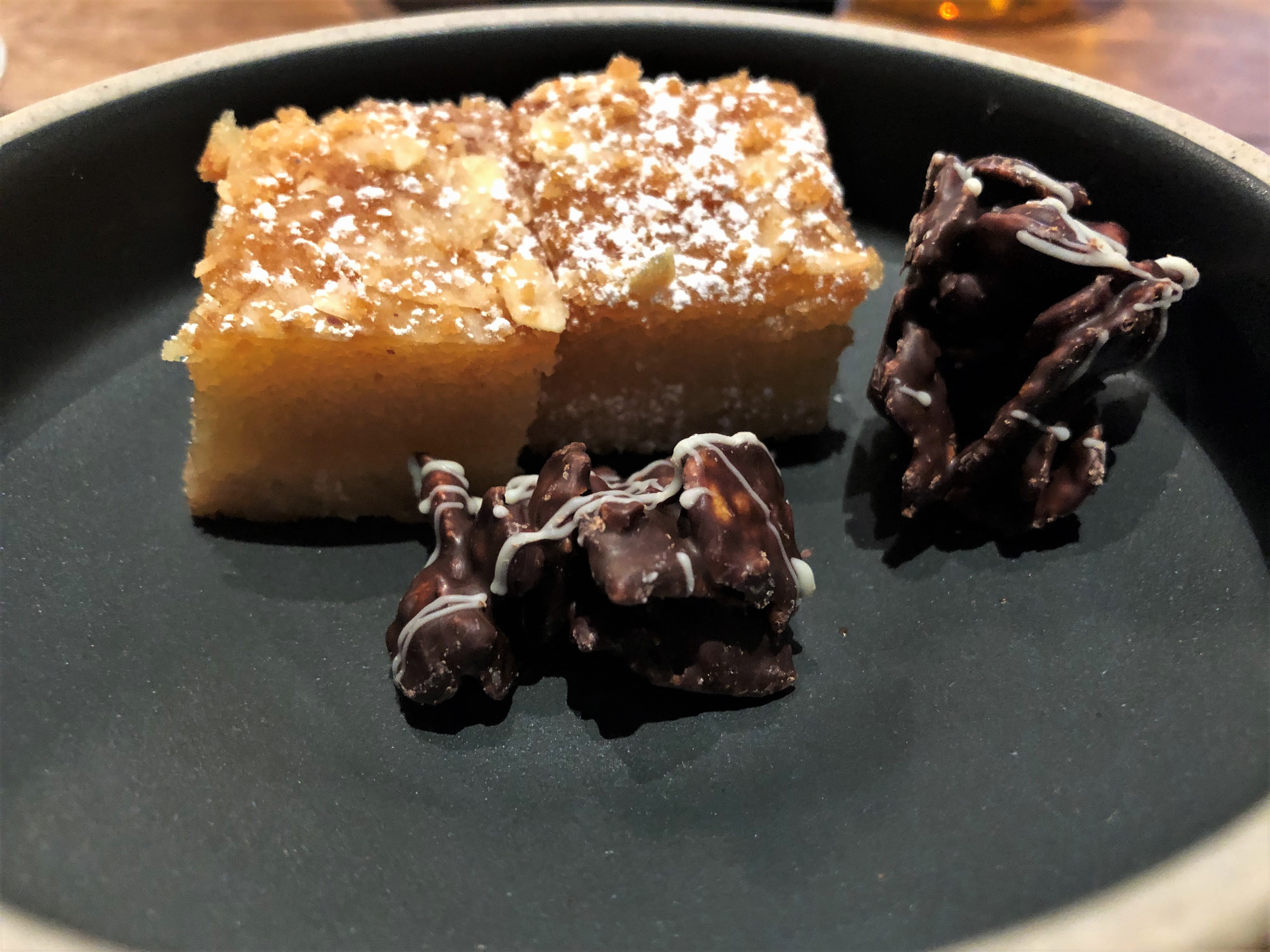 Mit einem Himbeer-Marshmellow, einer mit Passionsfrucht gefüllten Eispraline, Schoko-Crossies und einem Stück Kuchen schließt ein Menü, das eindrucksvoll belegt, warum das „Haus Stemberg“ so erfolgreich ist.