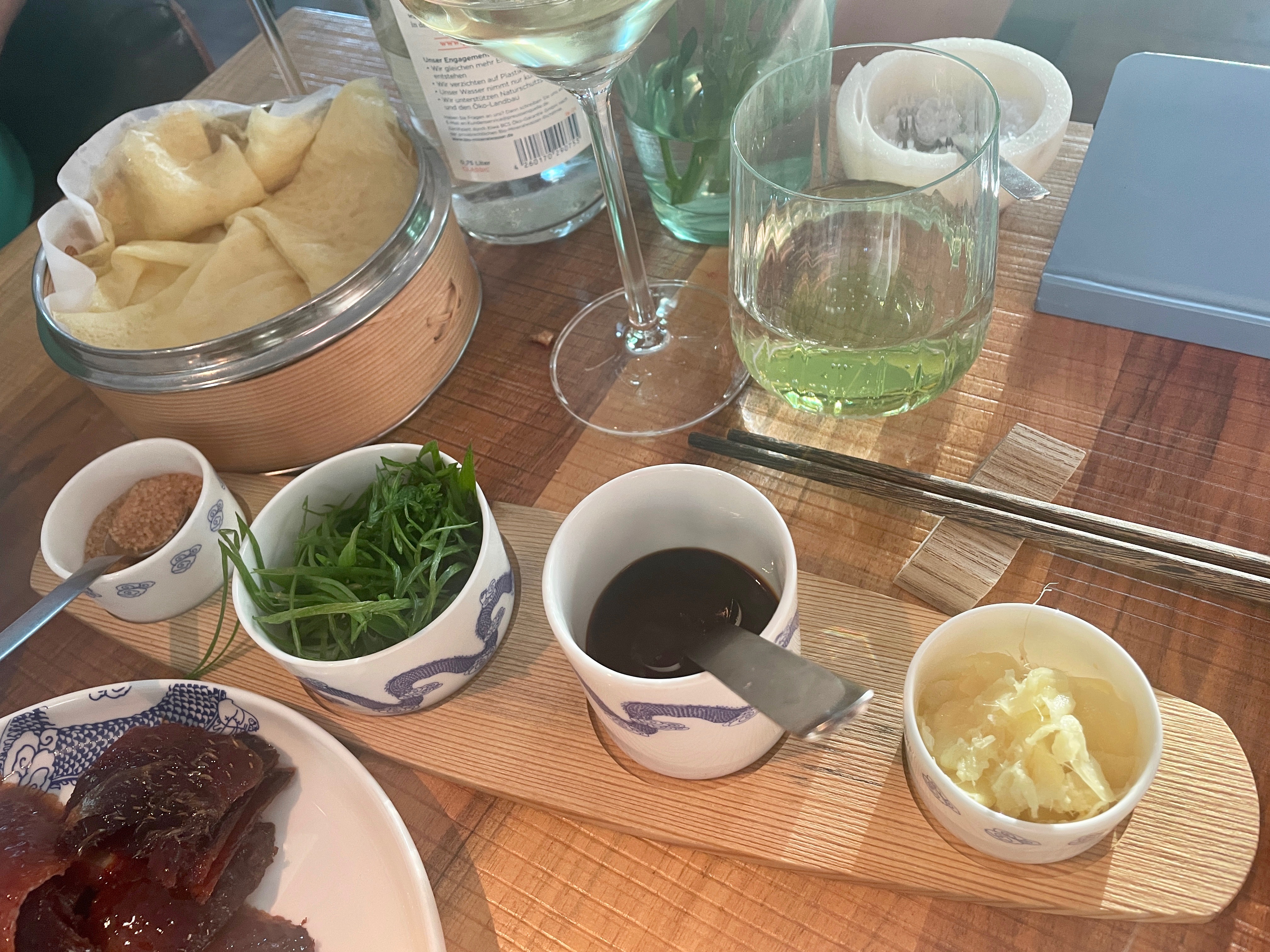 Philipp Vogel hat sich mit diesem Menü ein eindeutiges Markenzeichen geschaffen. Auch wenn seine Interpretation von der originalen Pekingente hier und da abweichen mag, bot sie doch viel authentisches Flair und kräftigen, intensiven Geschmack, der den Besuch allemal gelohnt hat.