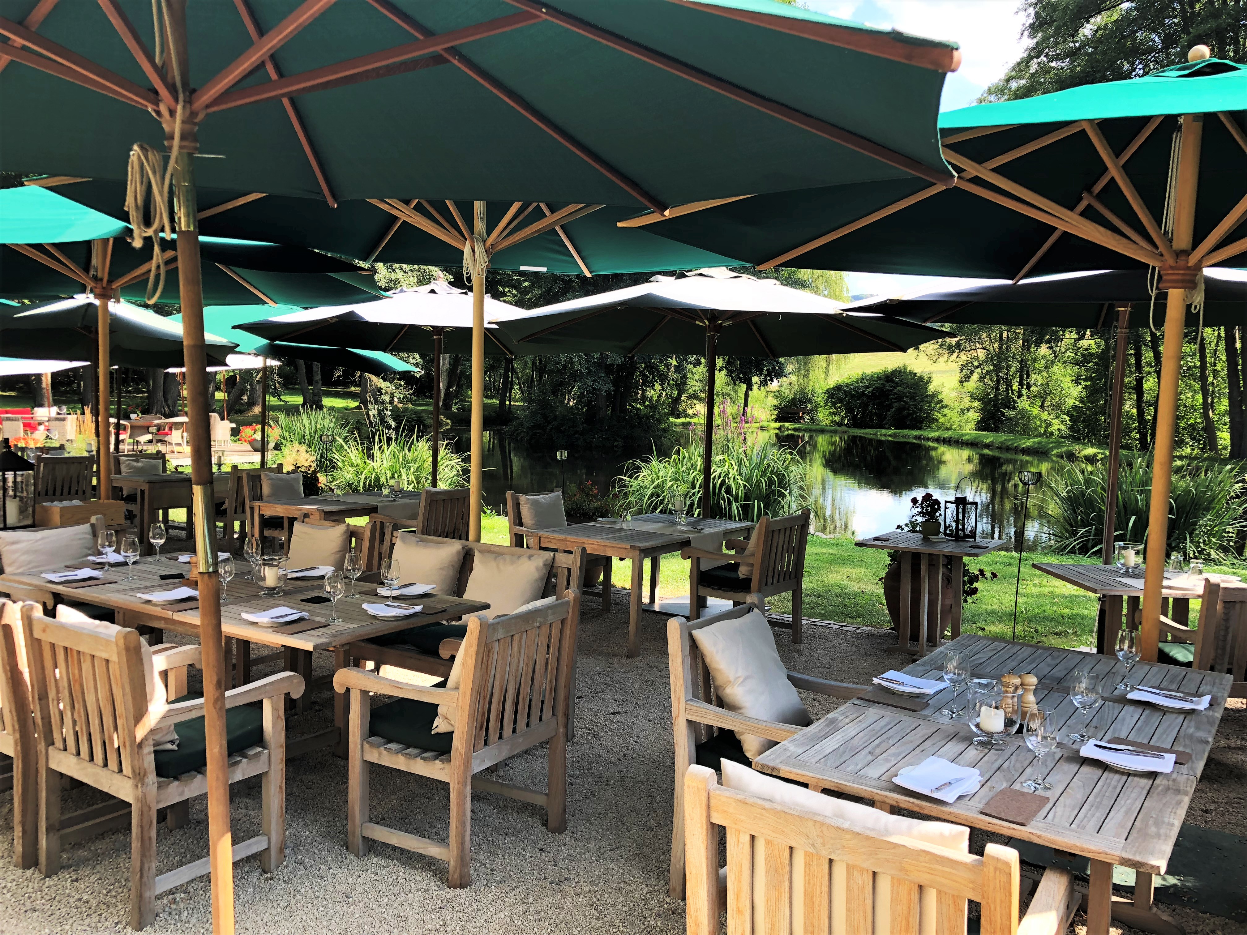 Harald Rüssels imposantes Landhaus fällt dagegen in der medialen Berichterstattung nur selten auf, obschon der Patron mehr als seine benachbarten Kollegen sogar mit regelmäßiger TV-Präsenz glänzen kann. Dem Gästezuspruch tut das keinen Abbruch. An diesem Donnerstagabend ist die geschmackvoll eingedeckte Terrasse nahe des eigenen Teiches gut besucht. Auch die Gäste des hauseigenen Zweitrestaurants „Hasenpfeffer“ werden hier brüderlich integriert.