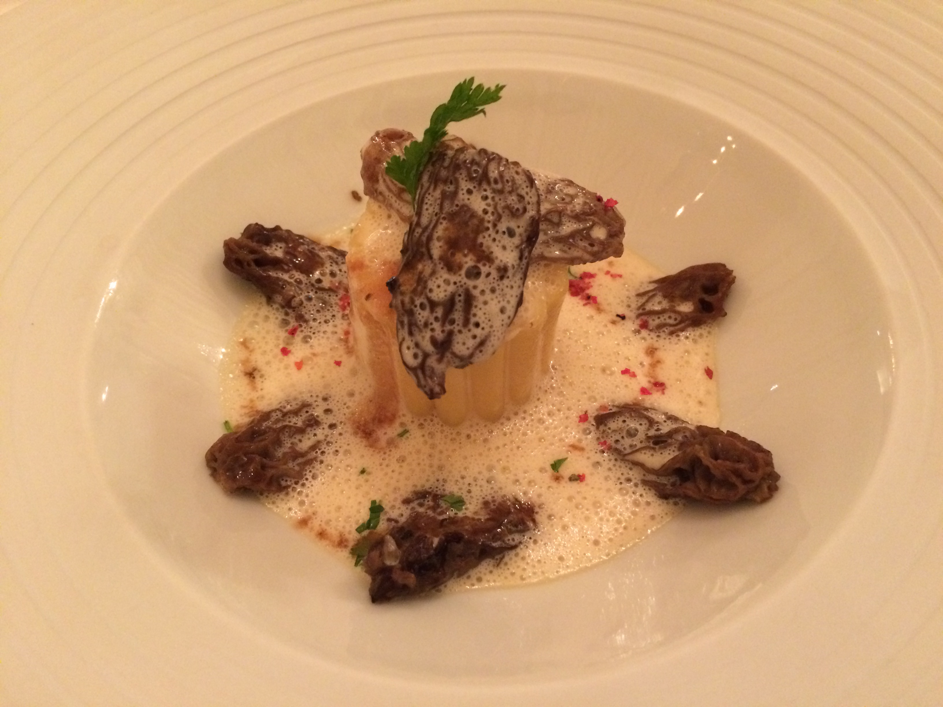 Auf die danach folgende Maccaroni-Charlotte mit Morcheln hingegen freute ich mich bereits im Vorfeld und wurde nicht enttäuscht. Großzügig portioniert badeten die Pilze in einer schaumig-cremigen Sauce von PX Sherry, die Charlotte gefüllt und zusammengehalten von einer feinen Farce. Das ist Klassik, die mir gefällt und die mich begeistert.