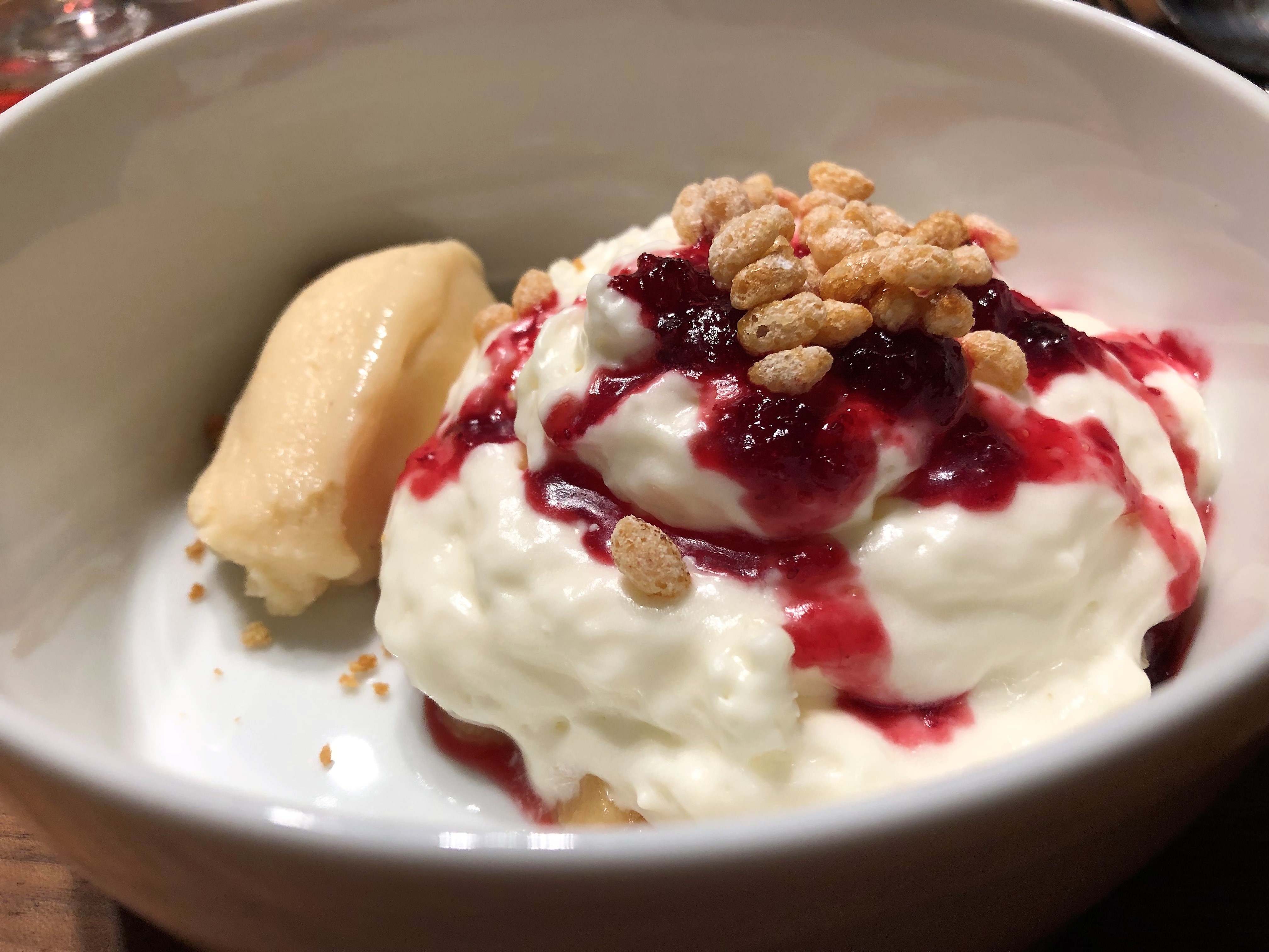 Was aber wiederum auf meinen Gang zutrifft. Milchreis als Espuma, unter dem sich Quittenkompott findet, ist in dieser Form von jeglicher Schwere befreit und zusammen mit einem guten Braune-Butter-Eis ein wirklich origineller Abschluss meines Essens.