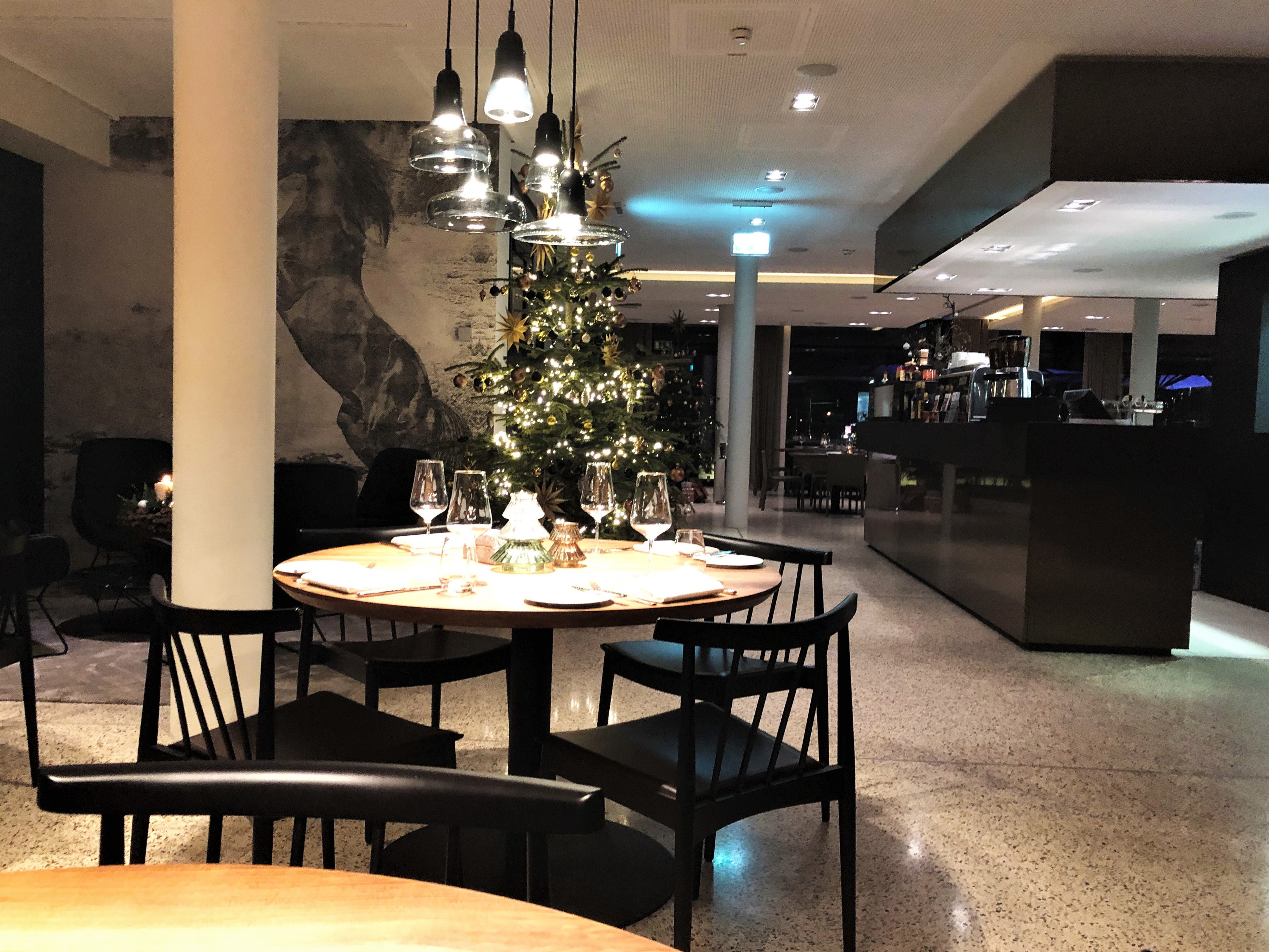Das Ambiente ist hell und luftig, eher nordisch neutral und verteilt sich auf zwei recht große Bereiche. Im Sommer wird auch eine große Terrasse bespielt, der man mit mehr Pflanzen und Sonnenschirmen allerdings etwas mehr Heimeligkeit verleihen könnte.